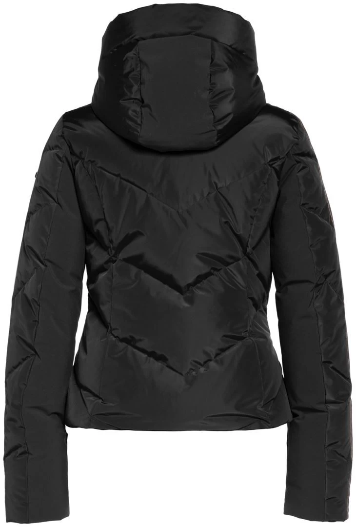Gewatteerd donsjack met vaste capuchon, afneembare sneeuwvanger en contrasterende strepen langs de mouwen. Het jack heeft een gedeeltelijk gerecyclede voering, RDS-gecertificeerd dons, drie zakken, een binnenzak en een zakje op de mouw voor een skipas.